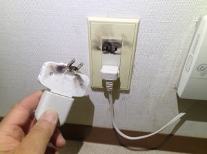 ▲焼けたり焦げたりしたコンセントは即取替!