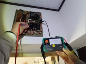 ▲絶縁抵抗を計りながら原因を特定していきます
