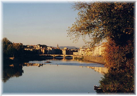 アルノ河の朝焼け ホテルから歩いてミケランジェロ広場まで行きました。 例のごとく、道に迷いまくって遠回り