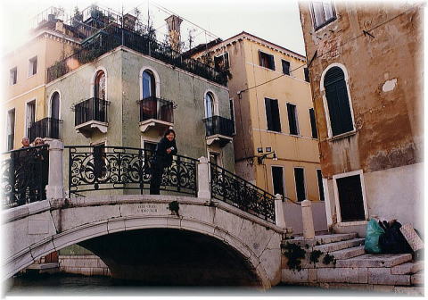 サンタ・マリア・デッラ・サルーテ教会 ティツアーノの壁画がある、らしい。 行った時は閉まってた…。 サンタ・マリア・デッラ・サルーテ近くの橋 お姫様気分 (ゴミ袋あるけど…) あちこちにかかる小さな橋も、なかなか面白い