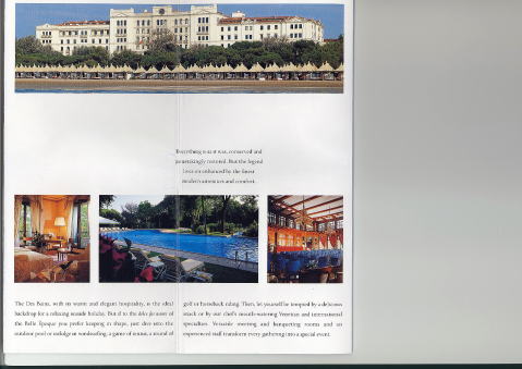 なんと、「ヴェニスに死す」の舞台となった ホテル・デ・バンに宿泊! (本島のホテルがいっぱいで、ベターチェンジ。 ラッキーこの上なし) ビデオには撮ったが、写真が無い…。 というわけでパンフレット