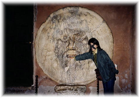 真実の口 サンタ・マリア・イン・コスメディン教会の入り口のそばにひそっとあります。 古代の下水道のフタだとか?