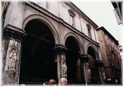 シエナのライバルはフィレンツェ。 というわけで、シエナの聖人たちはフィレンツェの方角を 向いて、シエナの町を守っているのだとか。 微妙に斜めを向いているのが分かります。