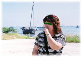 難破船(?)をバックに、中森明菜の「難破船」を熱唱中のみーたん