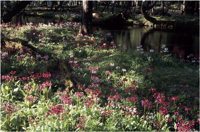 クリンソウは鉢物や、日本庭園などで見かけていたので、てっきり園芸品種だとばかり思っていました。自然条件の千手ケ浜で、これだけの群落をつくるのに、どれだけの時間がかかったことでしょう。鹿の食害から守るため網を張るなど、手厚く保護されて来たことも見逃せません。