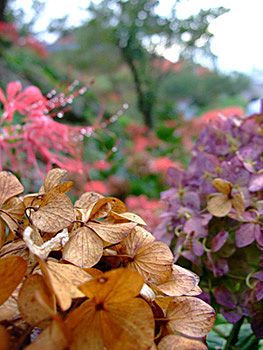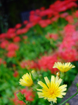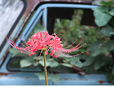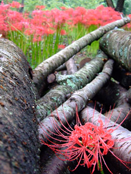 | 松山にもこんな山奥があったのかと目を疑うほどの細い道。進めど進めど群生は見えてこないので、きっと刈られてしまったのだよと勝手に思ってしまった。どうせ引き返すなら動物霊園まで行ってしまおうとどんどん坂を登っていたら、うわぁ!辺り一面彼岸花に出くわした。ちょっと終わりかけだったので色あせていたが、絨毯のような咲きっぷりは河中町の比ではない。 | ||