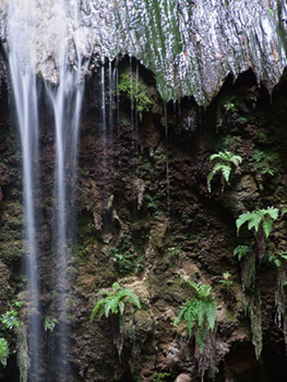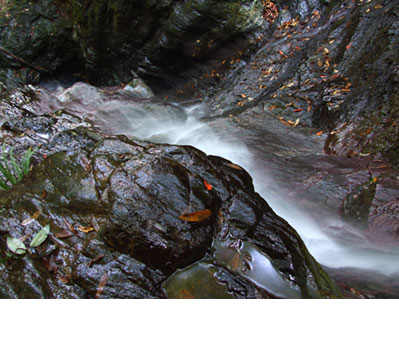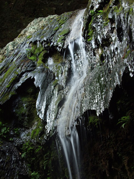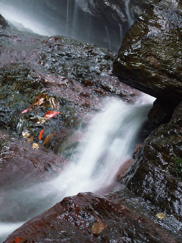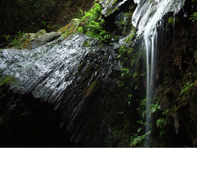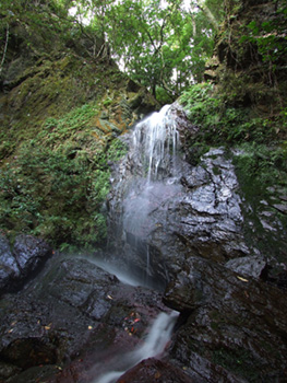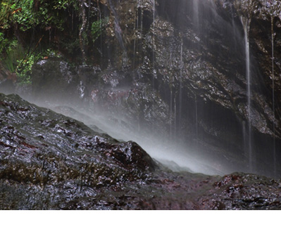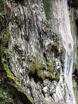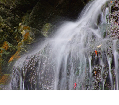 前夜からの時々雨で道中もぱらぱら降っていたので水量を期待していたのだが甘かった。二つの滝があるので夫婦の滝のようだ。どっちの滝も水量が少なく、全体写真はつまらないものになってしまうので一つだけ載せることにした。しかし、これがどっちの滝だったのか分からなくなった。 |