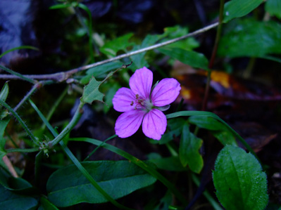 | 時間が無く、十分な写真をとることが出来なかったが、いつも山野草を撮っている妻は満足できたようだ。 これは、秋に咲くのでジンジ草。春に咲くのはダイモンジ草。本では一緒なっているのもあるが、本来は別物である。 (妻撮影) |