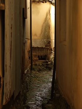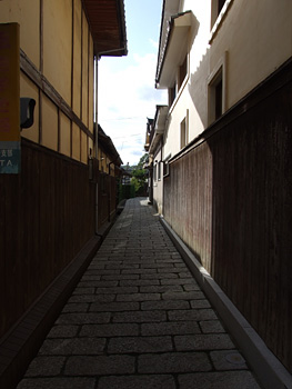 | ノスタルジックな街並が続く。普通に生活している所なので車の往来が多い。街並み保存のため、観光客の車は入らないようガイドマップには記されているが、ここの住人が乗り入れているため、観光客も入っていいのかと勘違いしてしまう。土産物屋の店員の愛想はどこも悪いように思える。まぁ、特に買いたいものがないのもあるが。縁側にミカンを置いて、善意の集金箱を置いている所が多い。通り内にある中学校の生徒がすれ違いざまに挨拶してくれるのはいい。写真には観光客が写らないようにしたが、けっこうツアー客が多い。内子座はこの通りとは外れた所にあり、しかも道の行き止まりにあるのでいい写真が撮れなかった。 | ||